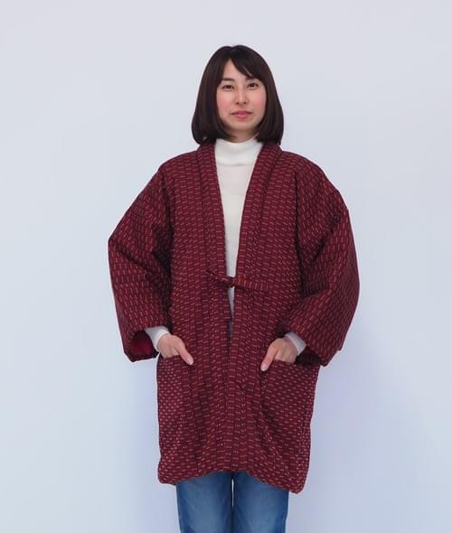 【テレビCM採用】婦人用袢天 雨だれ柄 エンジ