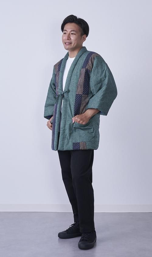 筑後織(久留米織)紳士用袢天 十の字板締め柄